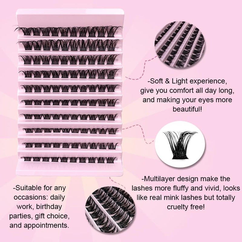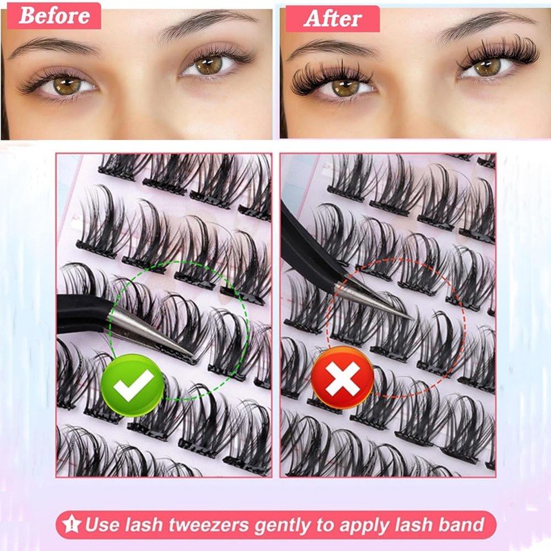 • ✨【DIY CLUSTER LASHES AT HOME】- Individual eyelashes can perfectly replace classic eyelash extensions .You can apply individual cluster lashes at home by yourself. Easy to put lashes on, gorgeous results, and lash clusters are not easily fall apart. Cluters take less time to complete each eye. Now save so much money and time.