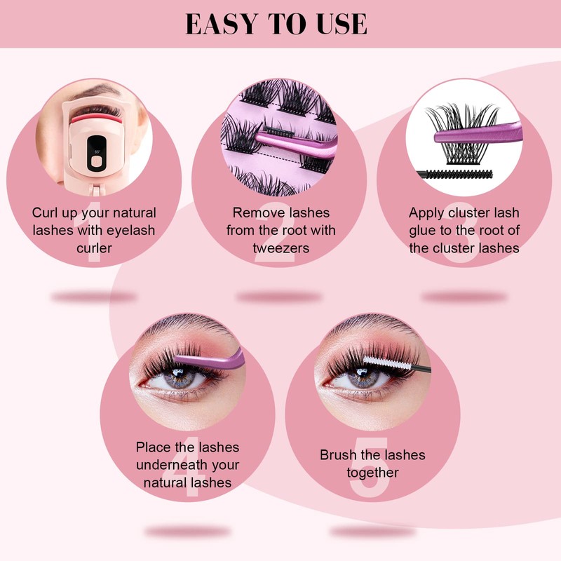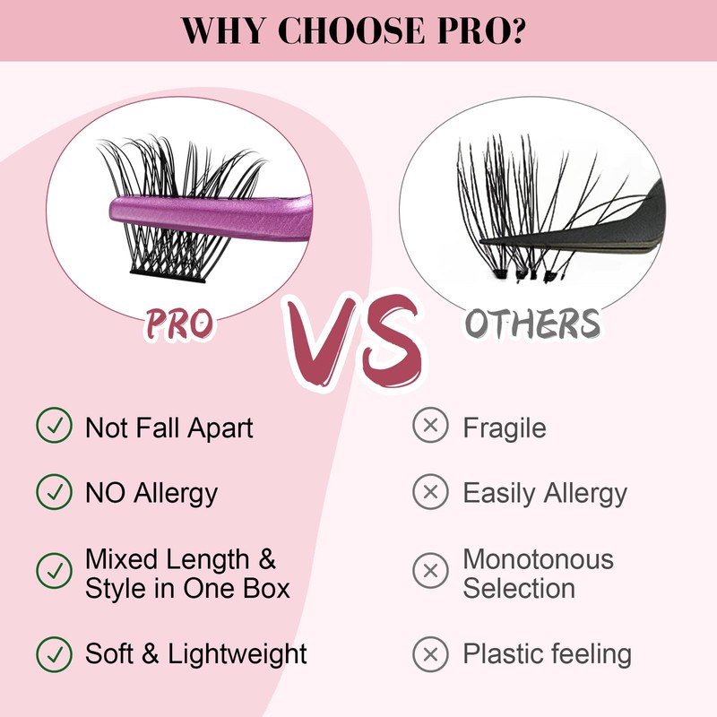 - Bring salon to your home: Pro LashBeauty Lash clusters are easy to apply. Divided individual Lashes into sections, easy to pick up and apply by yourself. You can apply the eyelashes with different lengths and styles according to different occasion. Save money from doing eyelash extensions. You will become a master of DIY lash extensions with a little practice!