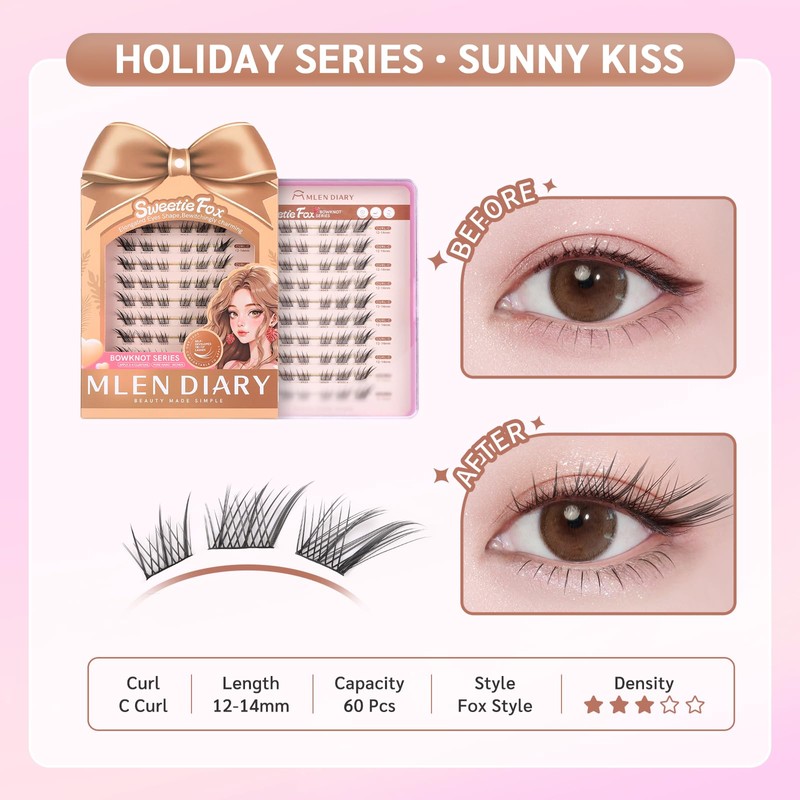 Lash Clusters 60PCS Natural Eyelash Clusters C Curl Wispy DIY Eyelash Extensions 12-14mm Soft & Light Eyelash Clusters Cat Eye Style (Sweetie Fox)
