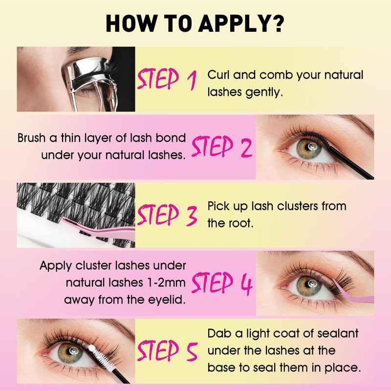 - 【High-Quality Lash Clusters】 Compared with other lash clusters, our lash clusters band is stronger and thinner. So you will feel easier and more comfortable when using the DIY cluster lashes. Durable and reusable, natural cluster eyelash extensions resist shedding and maintain their shape, offering excellent value and convenience.