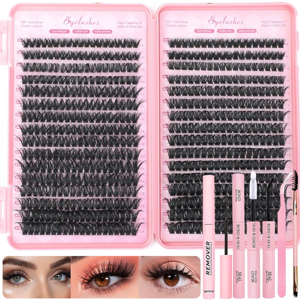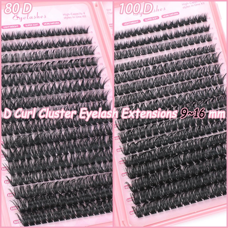 - Abundant Items You Get: This lash clusters include 640 Pcs eyelashes with different density 80D 100D, length 9-16 mm, 1 lash bond and seal, 1 tweezer, 1 remover, 1 brush. You can DIY eyelash clusters, no need go to salon, save time and money