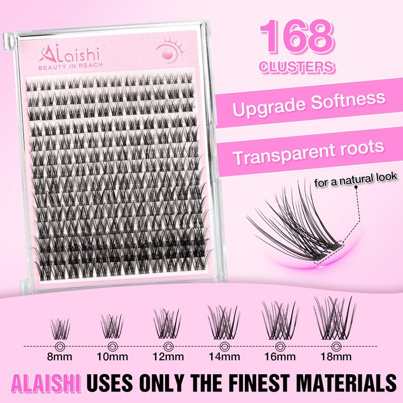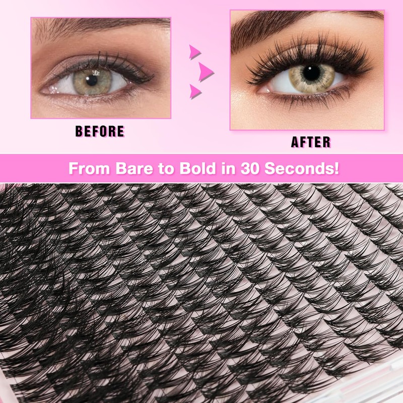 - 【Fluffy D-Curl】– 168 Clusters for Effortless Daily Glam! Achieve natural-looking volume with wispy lash clusters. Each box includes 280 clusters in a soft D-curl design—apply 5-6 clusters per eye for effortless daily wear that blends like real lashes!