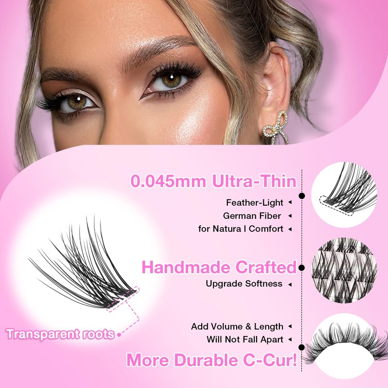 - 【Ultra-Soft & Featherlight Design】– Premium 0.045mm Ultra-Thin Black Band! Crafted with premium imported 0.045mm ultra-thin black band, our natural lash clusters are ultra-thin and weightless, mimicking real lashes. These fluffy lash clusters bend naturally, providing zero irritation even after 72 hours—perfect for daily false eyelashes or eyelash extension kit newbies!