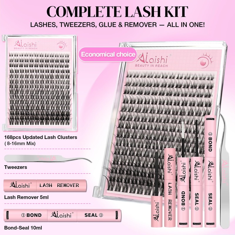 - 【Complete Pro Kit】– Tweezers, Bond, Seal & Remover! Our lash clusters kit includes angled tweezers (precision grip), hypoallergenic lash bond & seal (160-hour hold), and gentle remover. Build manga lash clusters or natural looks in 5 mins—no salon tools needed!