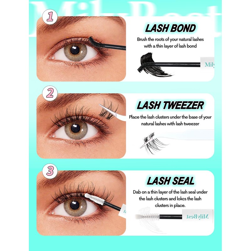 - Complete DIY Lash Extension Kit, Salon Results at Home: Our all-in-one eye lash extension kit includes: 1 box of mixed lengths (10-16mm) cluster lashes, 1 dual-ended lash adhesive & sealant (2-in-1 for strong hold + waterproof protection), 1 precision lash tweezer for easy application. Skip the salon—this pro-quality set has everything you need to apply flawless lash clusters in minutes, saving you time and money