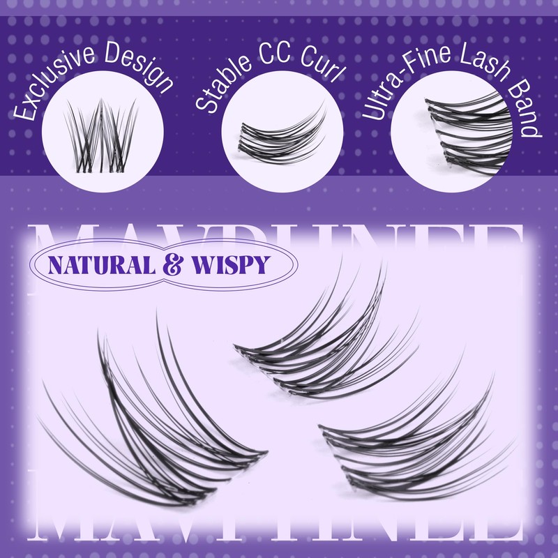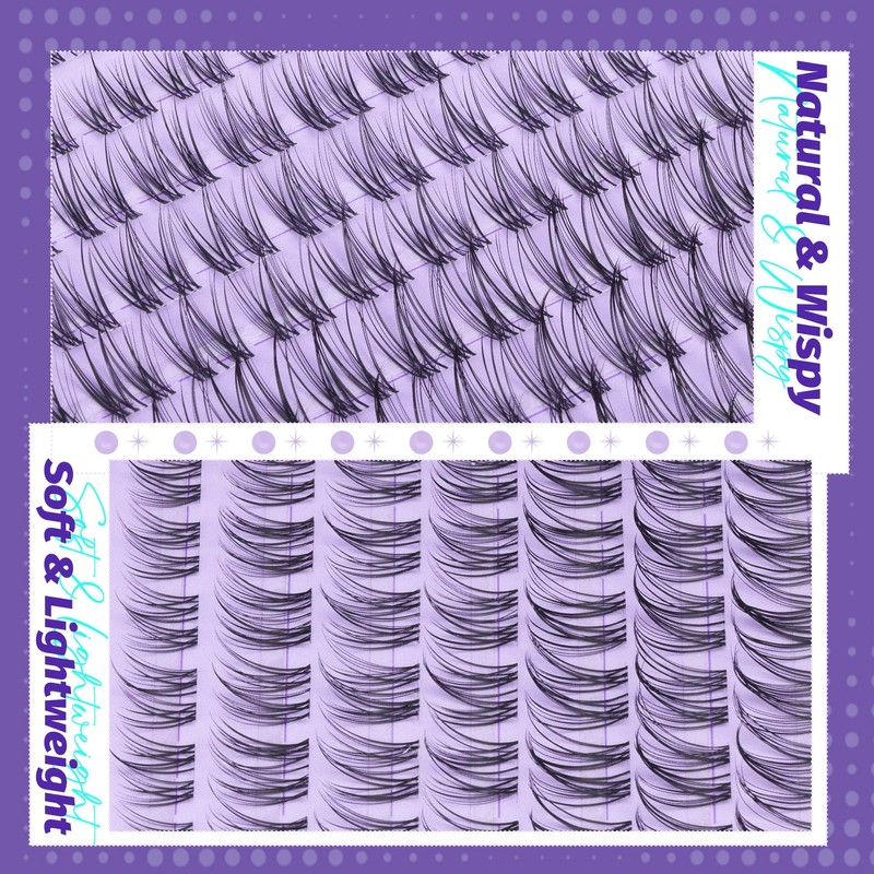 - Ultra-Thin, Flexible Clear Band for All-Day Comfort: The lashes clusters wispy are crafted with an ultra-fine and soft lash band that conforms effortlessly to your lash line. Lightweight and comfortable, these natural individual lashes ensure a snug fit without irritation, making them perfect for long hours of wear.