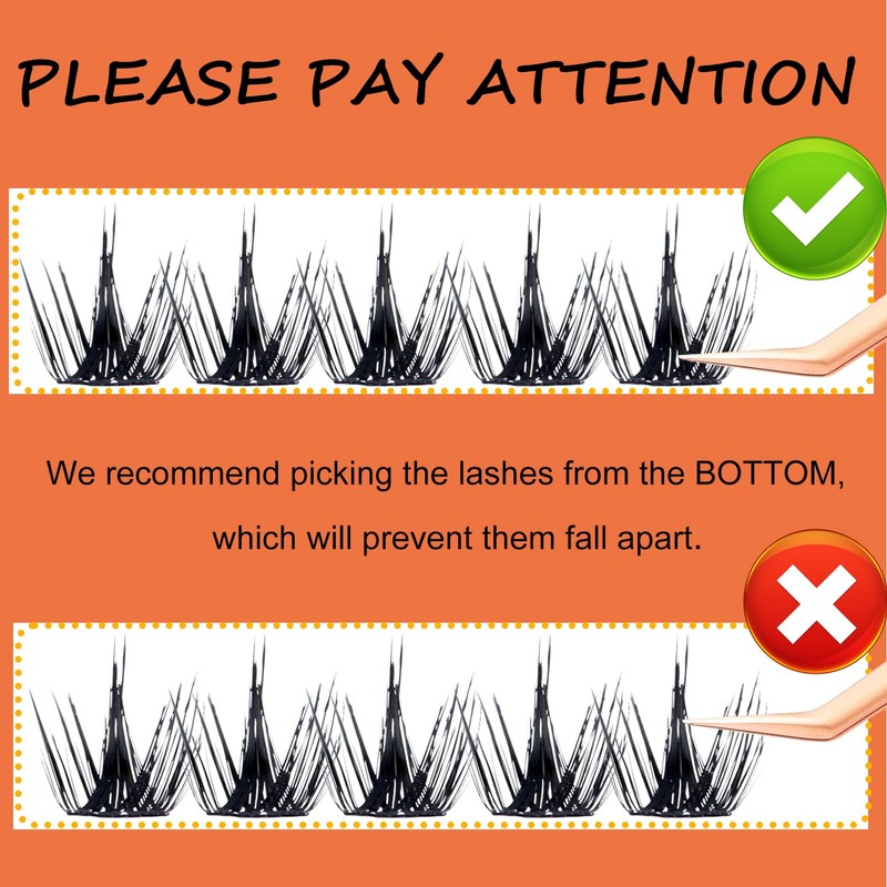 High Grade Silk Fiber Lashes: Our volume cluster lashes are made of finest PBT silk fiber which is soft and lightweight without knots. The thin band design makes the root of the lash clusters more flat and comfortable even when you sleep with these eyelash clusters.