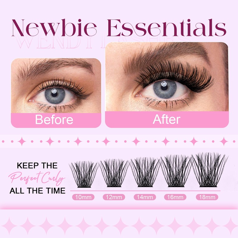 - 0-Burden Lashes: Crafted from eco-friendly A-grade materials, these individual eyelashes are ultra-soft, lightweight, and virtually undetectable when worn. The volume clusters lashes feature a fine, natural-looking texture with tapered tips and a matte finish for a realistic, non-plastic appearance—durable enough to shine even under bright spotlights.