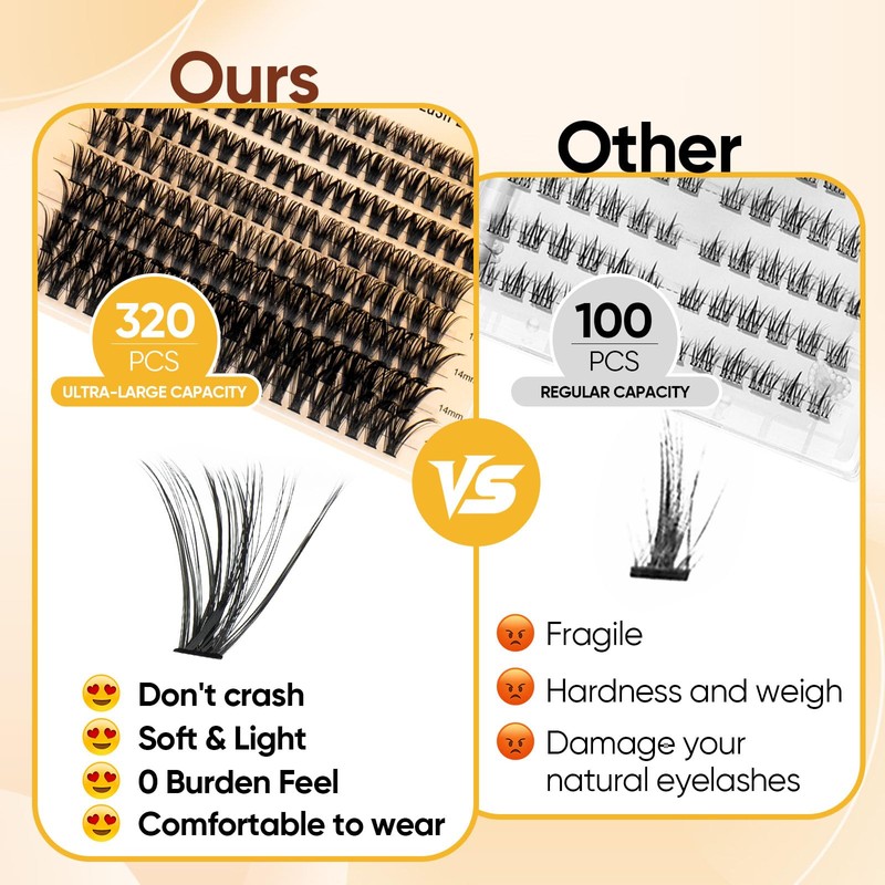 - Comfortable Soft Band: Designed with soft, lightweight, knot-free materials, these lash clusters are comfortable and natural-looking to wear all-day. You'll forget you're wearing lashes, allowing you to enjoy the beauty without any discomfort or heaviness on your eyelids. Suitable for anyone who wants to have more beautiful and impressive eyelash extensions.