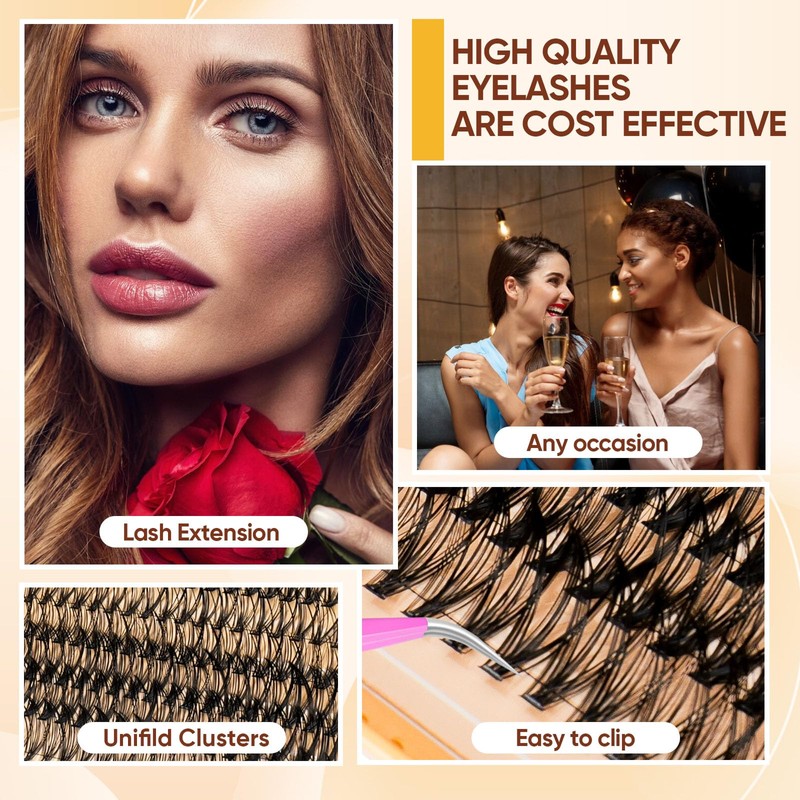 - Reusable: You can wear these cluster lashes repeatedly, and with proper care, they maintain their pristine condition, providing you with captivating eyes for an extended period. This reusability not only saves costs but also contributing to environmental preservation. can be used for a variety of occasions, be it a night out with friends, a special occasion, or even a day at work.
