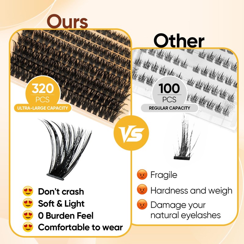 - Comfortable Soft Band: Designed with soft, lightweight, knot-free materials, these lash clusters are comfortable and natural-looking to wear all-day. You'll forget you're wearing lashes, allowing you to enjoy the beauty without any discomfort or heaviness on your eyelids. Suitable for anyone who wants to have more beautiful and impressive eyelash extensions.