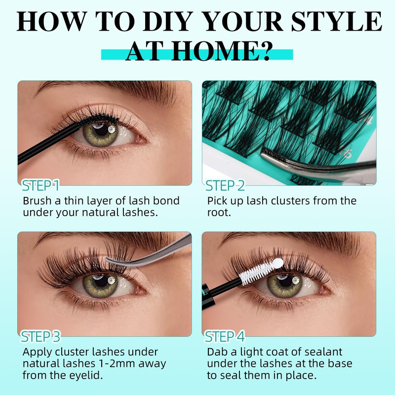 • 【High-Quality Fiber】:These lash clusters are made of high quality material,soft and comfortable.Our cluster lashes can perfectly blend with your natural eyelashes.The roots of the wispy eyelashes are treated with professional technology,making them flat and beautiful.
