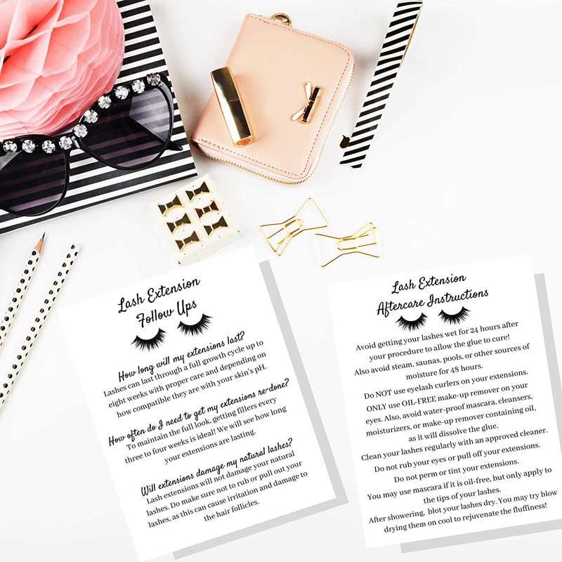 - Lash Extension aftercare instructions for your customers with a reminder to return for fillers every 3-4 or 2-3 weeks!