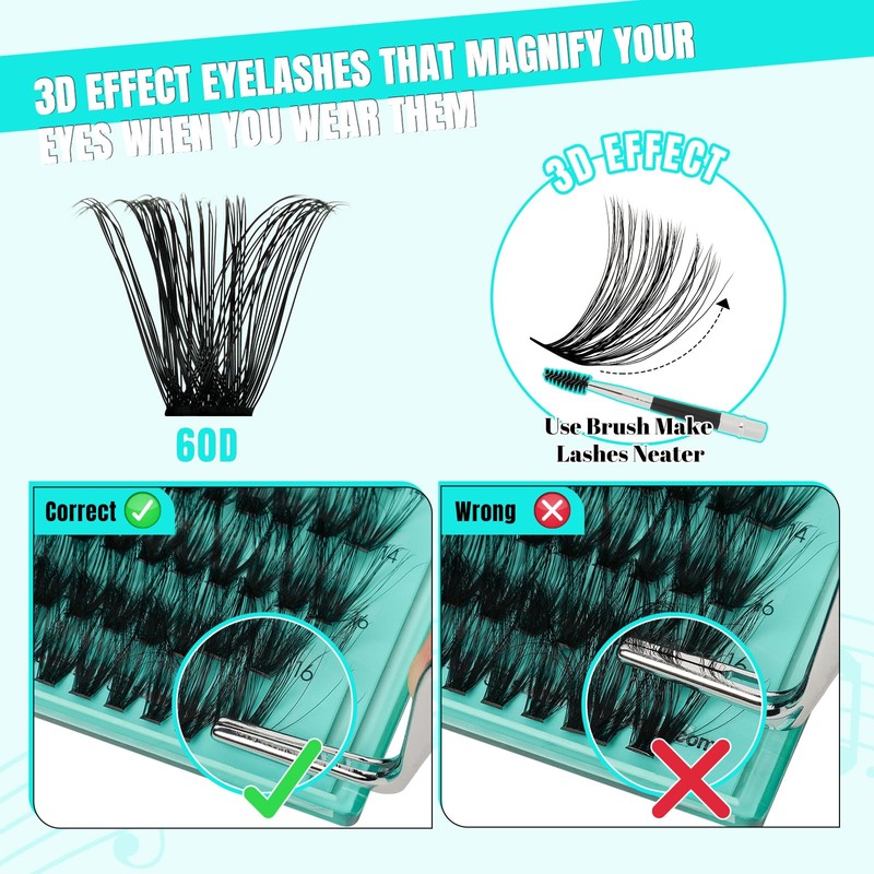 • 【Easy to Apply】:Firstly,curl your natural eyelash,gently brush your own eyelash with lash glue,then use the tweezers to pick up eyelash extension from the bottom of the false eyelashes,and apply the lash clusters under your natural lashes,finally brush the cluster eyelashes with the lash sealant.