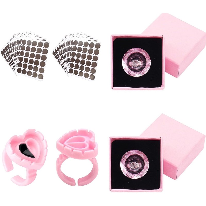 Lash Extension Kit, Diamond-Shape Lash Glue Rings, Aluminum Foil Glue Pallet Stickers, and Heart-Shape Lash Fan Blossom Glue Rings