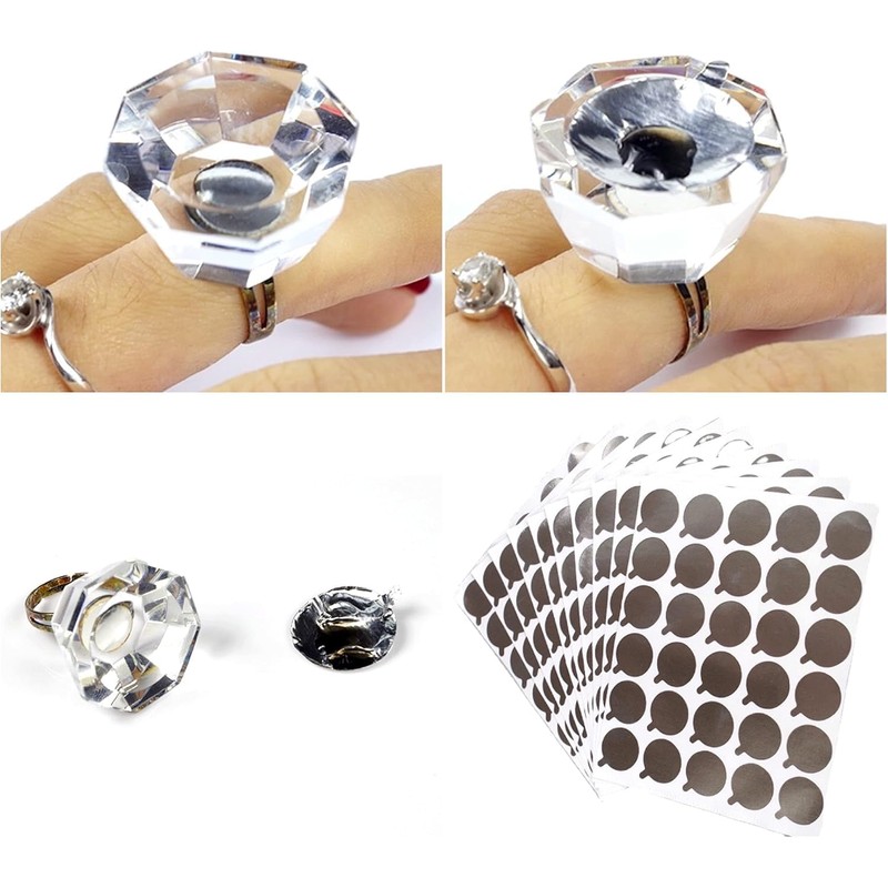 Diamond - shape glue rings: 1 pink, 1 crystal, adjustable, use with stickers for mess - free.