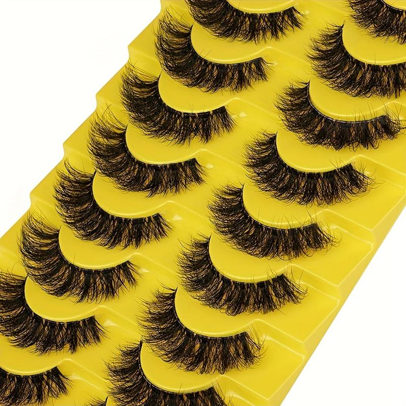 Lash Extensions Cosmetic Supplies, 10 Pairs Fluffy False Eyelashes, Wispy Faux Mink Eyelashes, Long Dramatic Lashes, 8D Volume Strip Eyelashes Lashes For Women and Girls