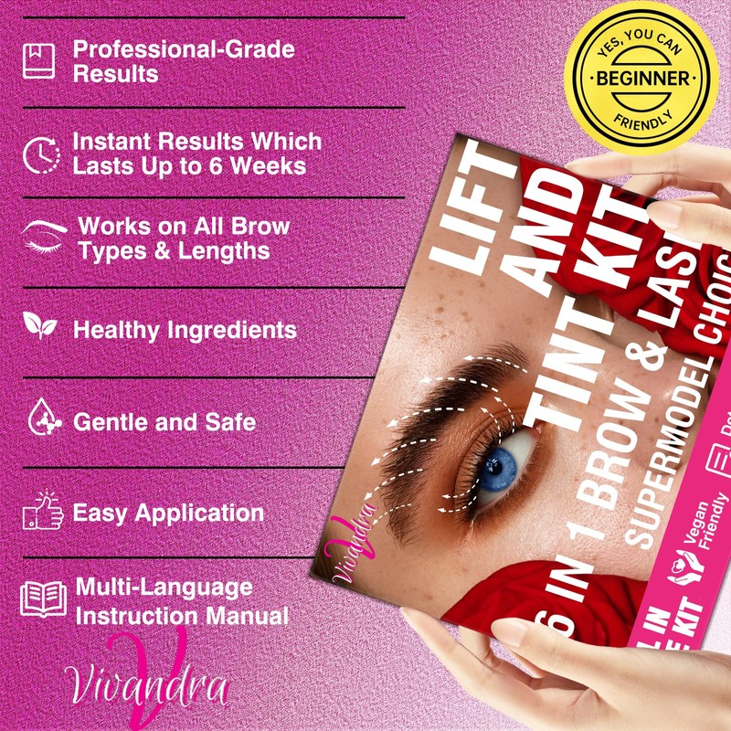 - 【Upgraded 6 In 1 Lash & Brow Lift Kit with Double Color】Achieve beautiful lashes and brows with just one kit! This all-in-one set includes lash lift, brow lift, and black and dark brown color for both brows and lashes, making it easy to create the great look.