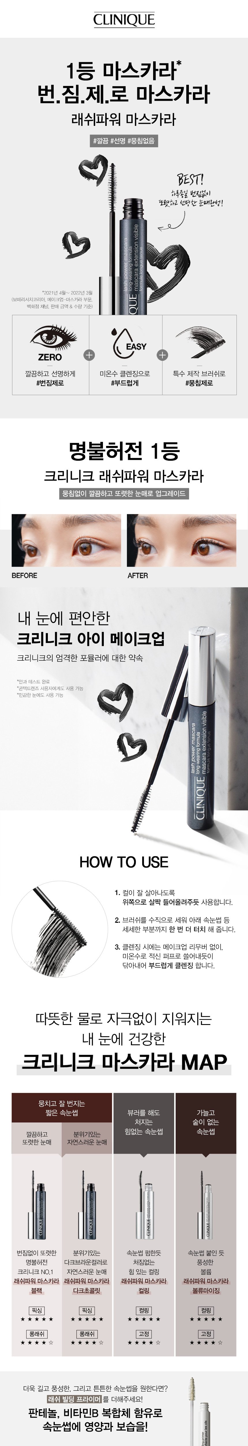 - 자연스러운 컬링 효과로 속눈썹을 길어 보이게 연출해주는 번짐 제로 마스카라