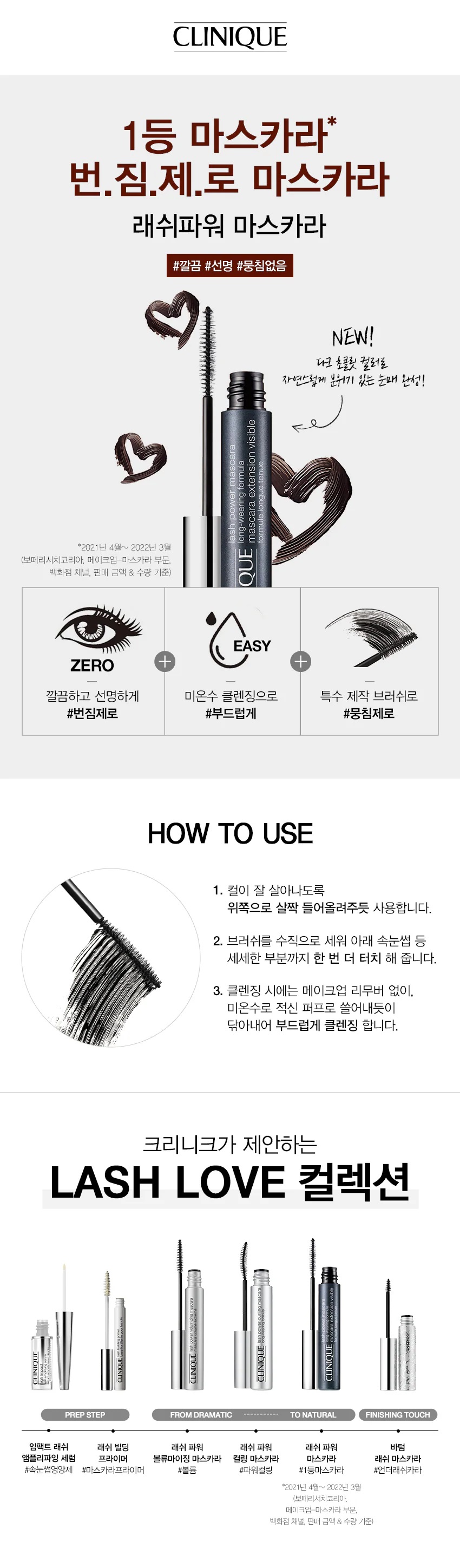 | 사용방법 | - 컬이 잘 살아나도록 윗눈썹 아래 부분에 브러시를 수평으로 대고 위 쪽으로 살짝 들어 올려주듯 사용합니다.- 아래 눈썹은 브러시를 수직으로 세워 눈썹 사이를 지그재그로 발라줍니다.- 클렌징 시에는 메이크업 리무버 없이 미지근한 물로 부드럽게 씻어내거나, 미지근한 물로 적신 퍼프를 사용하여 쓸어내듯이 닦아내면 마치 장갑이 벗겨지는 것처럼 속눈썹과 자동으로 분리 됩니다. |