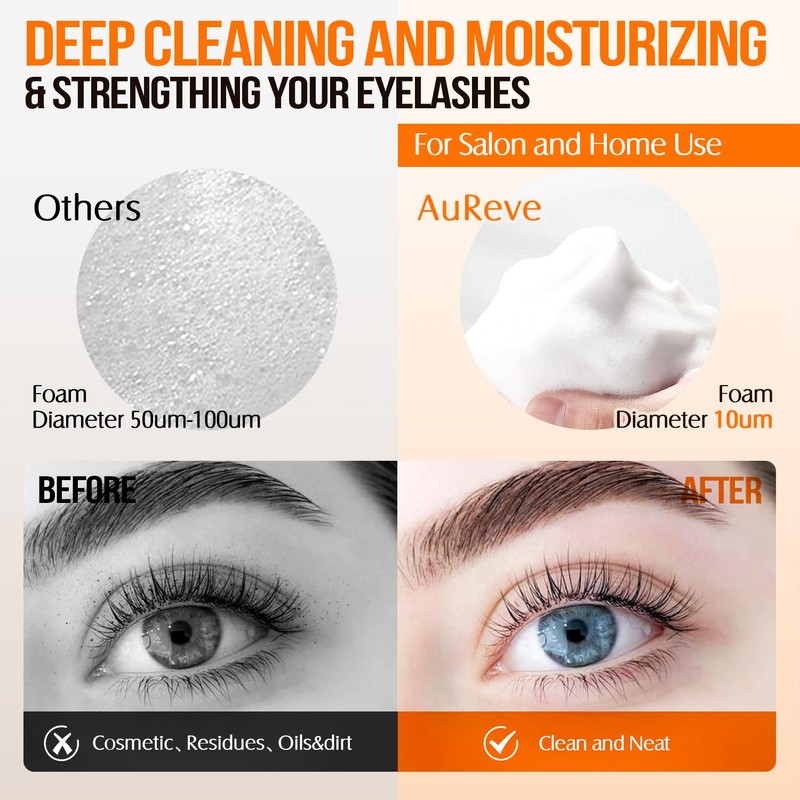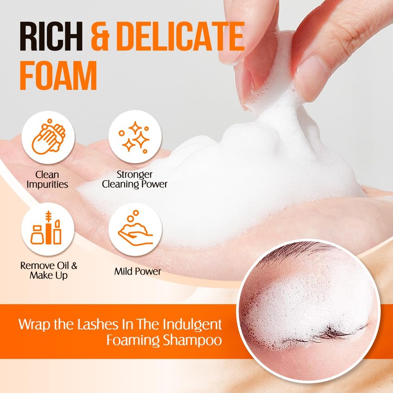 - Deep cleansing: This eyelash shampoo for lash extensions can make foam easily. Effectively removes oil, dust and makeup residue from lashes, lid margins and under eye area. Meanwhile, nourish your eyelashes.
