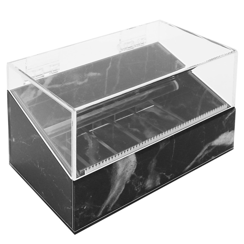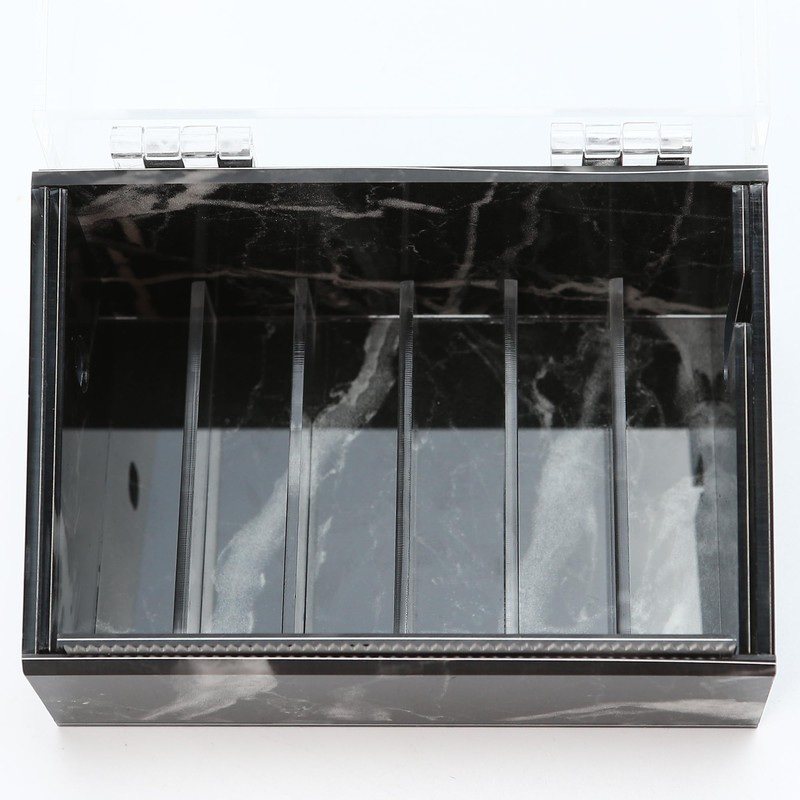 Lash Tape Holder Dispenser False Eyelash Washi Tape Cutter Multi-Grids, Dust-Proof Acrylic Clamshell Sticker Storage Box Holding Cover for Extensions, Holds Up to 6 Rolls, Black Marble Pattern Style
