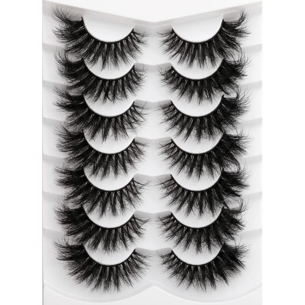 Lashes 20mm Fluffy False Eyelashes Thick Volume Dramatic Cat Eye Lashes 7 Pairs Long Strip Wispy Lashes Pack