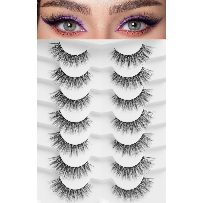 - VEGAN & REUSABLE: 7 pairs false eyelashes pack. The fake eyelashes use ultra-light synthetic fibers, cruelty-free, skin friendly. Bring pretty natural lash extensions look without damaging your own eyelashes, suit for DAY-TO-DAY use, wedding, vacation and so on