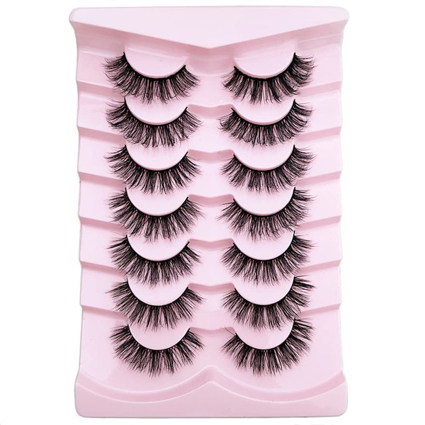 Lashes False Eyelashes Natural Wispy Cat Eye Lashes Fluffy Pack 3D Strip Short Volume Fake Eyelashes 7 Pairs Fox Eye Bulk (V-1)