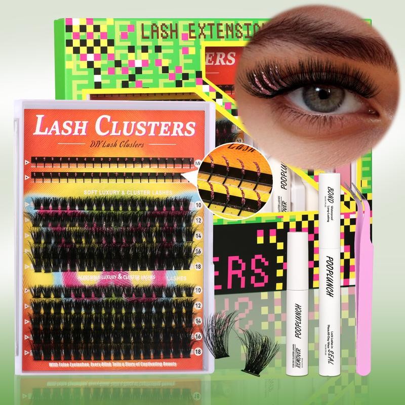 Lashes map for Clusters Kit Fluffy Dramatic Eyelashes Extension Kit DIY, 8-18mm Individual Lashes Kit with Lash Bond and Seal Makeup:_Ping