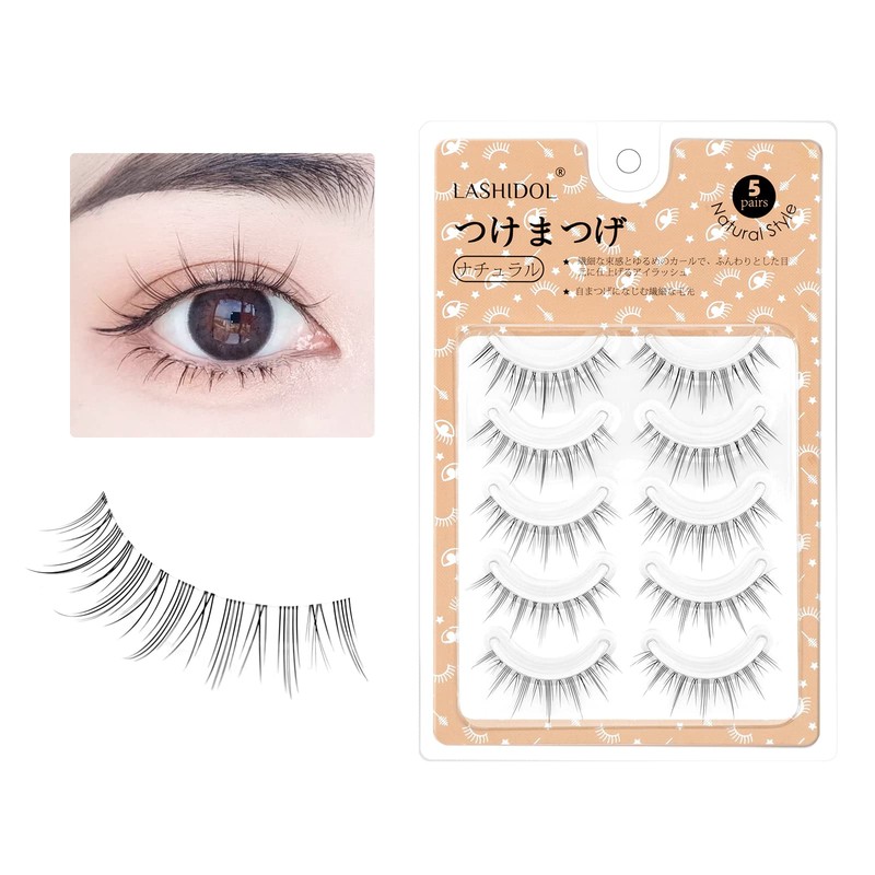 Lashidol False Eyelashes, Natural, Transparent Base, Handmade, DIY at Home, For Daily Makeup, 5 Pairs (Comic Idol)