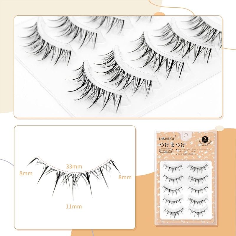 Lashidol False Eyelashes, Natural, Popular, Handmade, Premium Fiber, Long, Soft, DIY at Home, Daily Makeup, 5 Pairs, Reusable.