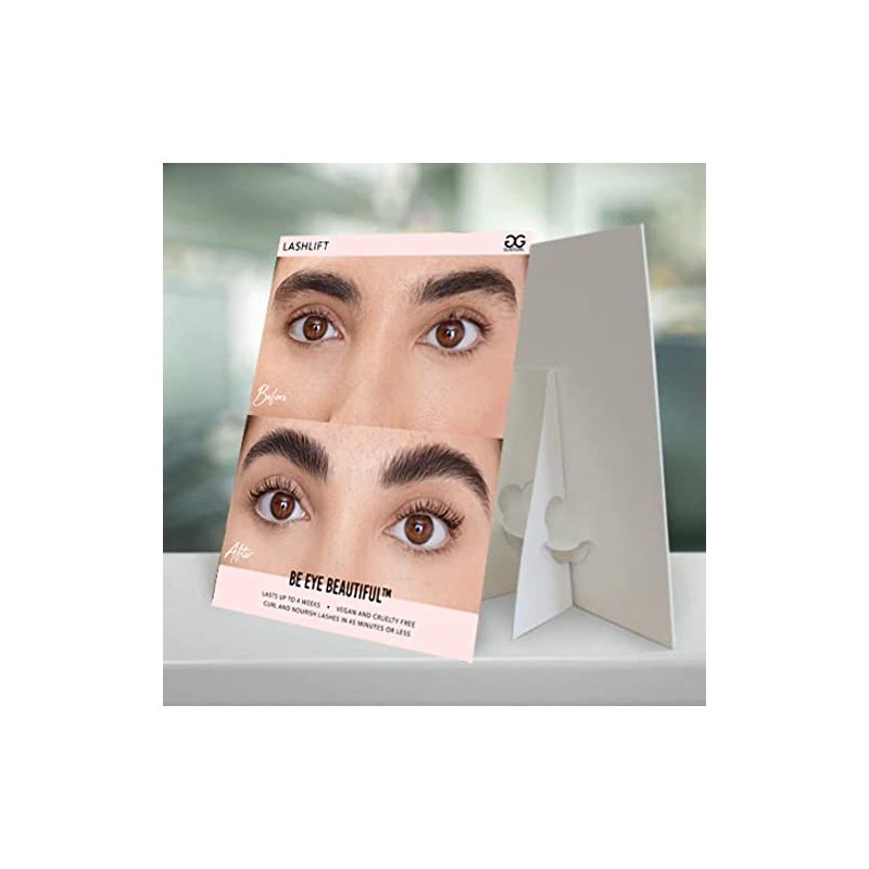 Let your clients know you offer only the best! The new GladGirl LashLift and Brow Lamination counter cards are a great way to let your customers know that you offer these quick and easy services right there in your salon. Durable enough for the busiest hustle and bustle of any salon or spa, the counter cards are constructed of sturdy PVC board and supported by a double-wing easel. The counter cards are not only an attractive display accent for any counter, window or surface, they are also a great resource to expand your clientele. These cards also add the bonus of being able to show any potential Lash and Brow Clients exactly what the service will look like, as these cards offer your clients a before and after look and the magic of these services! Let your customers know you’re a one stop shop for all their lash and brow needs!
