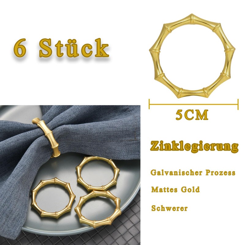 Lashua Pack of 6 napkin rings, gold, bamboo napkin ring, minimalist design, for restaurants, napkin rings for homes, hotels