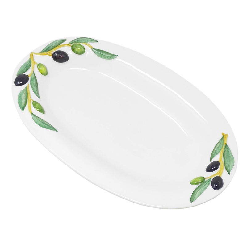 - Buon appetito with this magical decorative plate. The 3D relief in the shape of juicy olives of the white sideboard gives any food a special touch.