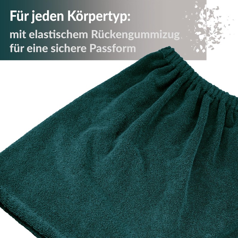 - Our opal green terry sauna kilt for men is soft and comfortable. With a size of approx. 55 x 165 cm, the sauna towel men's kilt offers men optimal comfort during the sauna session.