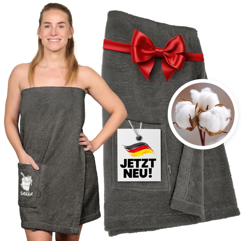 - The terry sauna towel for women is washable at 60 °C and therefore extremely easy to clean. An indispensable towel dress for women for sauna, beach, wellness areas or as a gift for sauna goers.