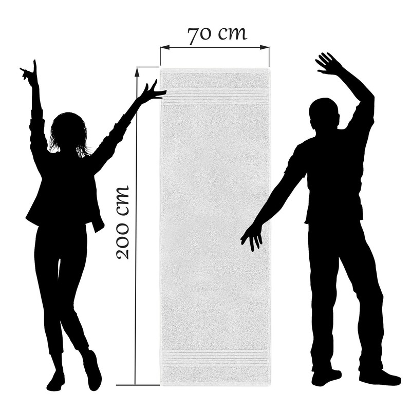 You will receive the soft and fluffy towel in 16 stunning colours. The side borders give every shower towel a stylish touch and give the bath towel a classic look.