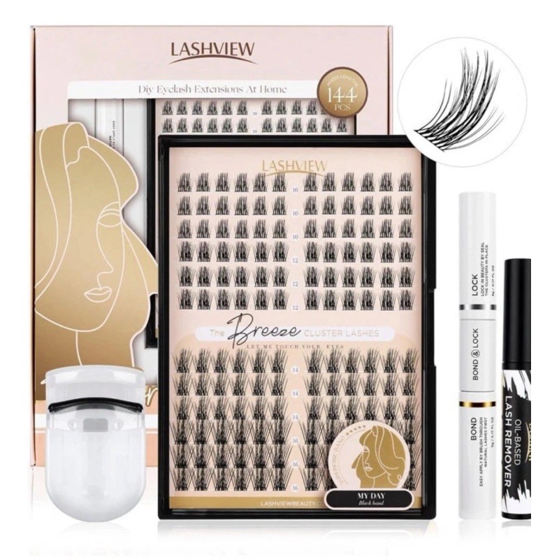 LASHVIEW (5) Packs Lashview Cluster Lashes Kit 144pcs The Breeze With Adhesive Curl