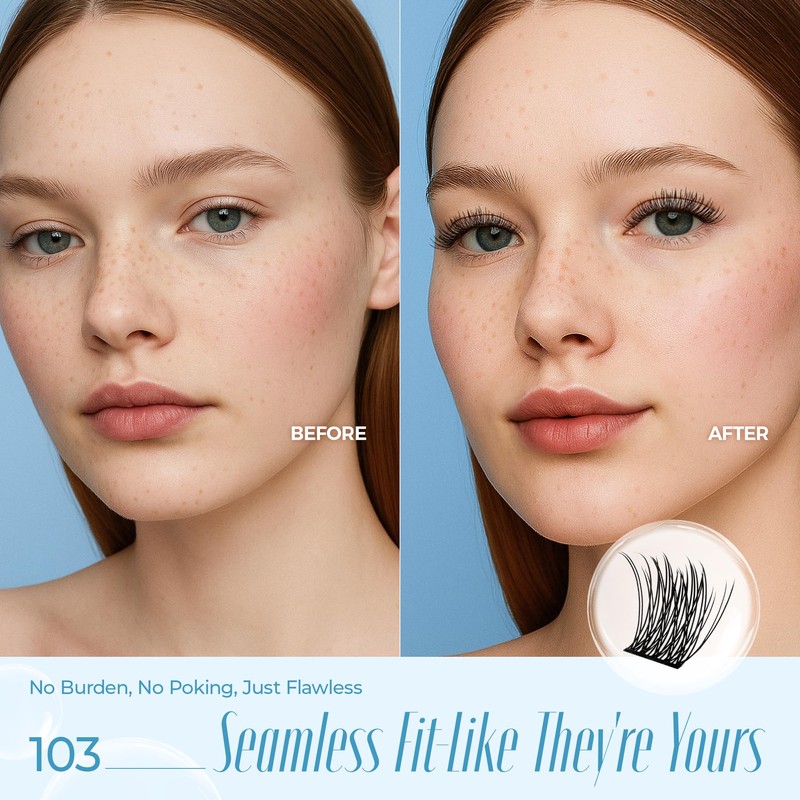 - Perfekter Sitz, makelloses Finish:Die flache, flexible Basis schmiegt sich ohne Druck oder Steifheit an den Wimpernkranz – kein Lifting, keine Härte, nur nahtlos schöne Wimpern, die mit Ihnen mitgehen