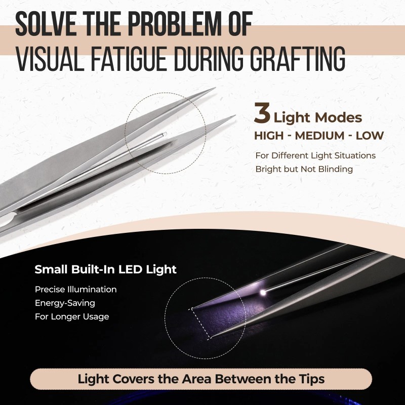 【MULTIPLE USE】These tweezers with light are versatile tools suitable for professional eyelash artists for separating eyelashes during grafting, as well as for tasks such as removing excess hairs, pulling out splinters, handling jewelry, and laboratory work. They fulfill various needs in precise situations.