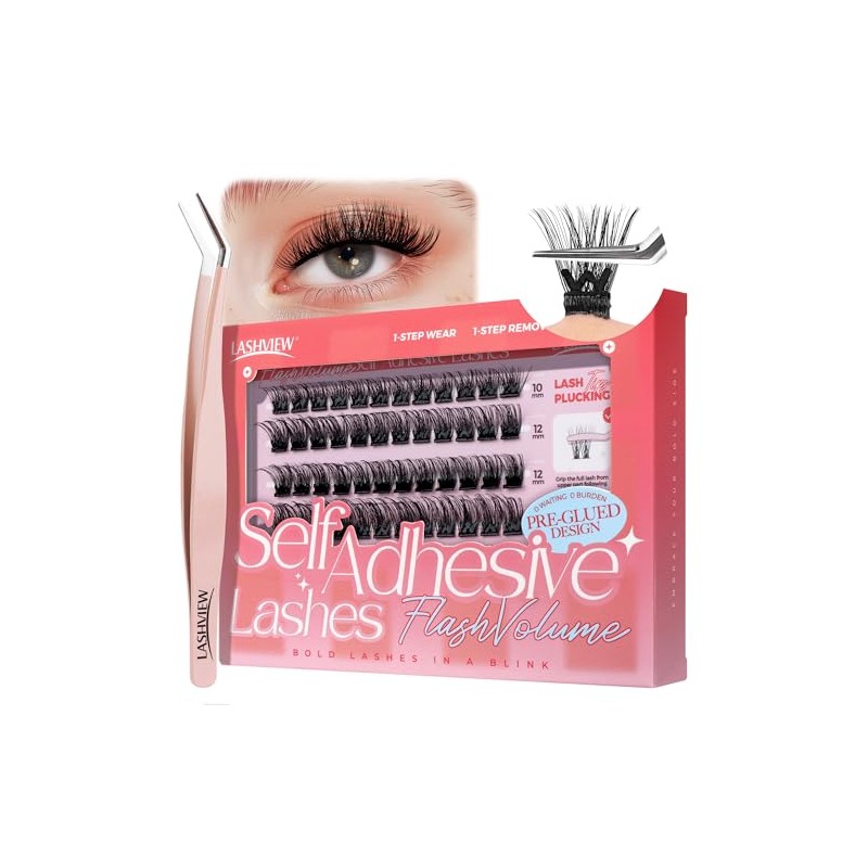 LASHVIEW Selbstklebende Wimpern, 3 Sekunden zum Aufsetzen, Super-Portabilität Einfach für Einsteiger. 24-Stunden-Halt, Ideal für Jeden Anlass 72 Stück 10-16 mm (Z02)