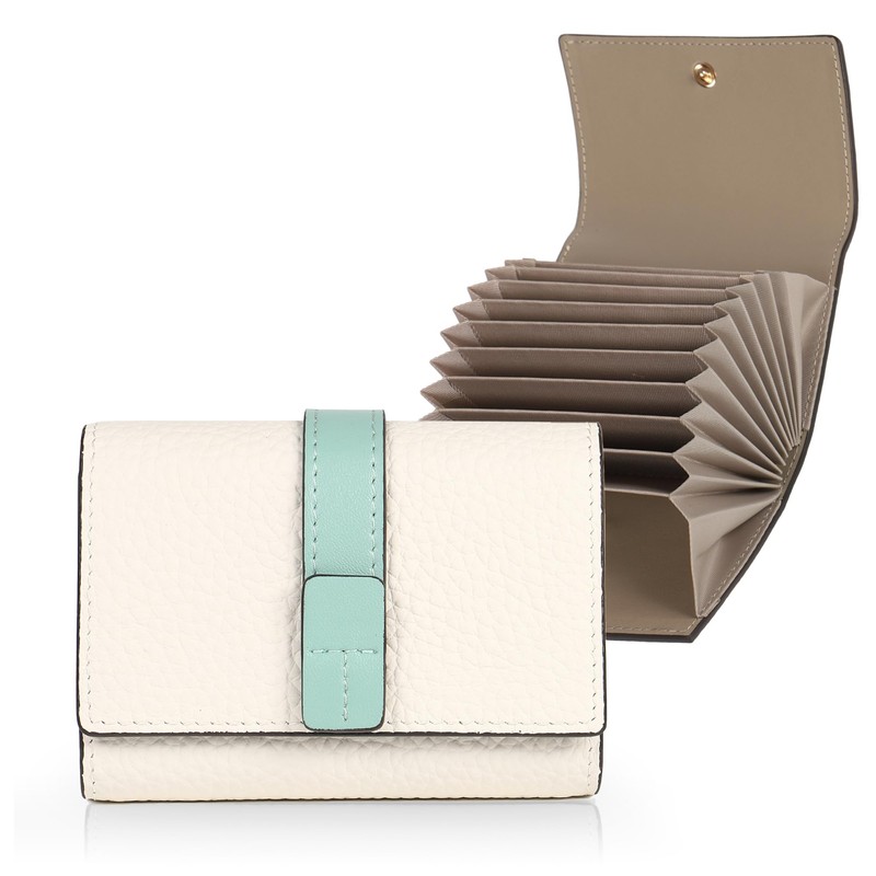 LASIEM Women's Card Case, Card Holder, Prevents Skimming, White × Emerald Green