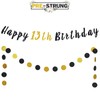 LASKYER Happy 13th Birthday Bunting Banner Black & Gold Glitter Circle Dots | Garland Banner Happy Birthday Party Decorations.