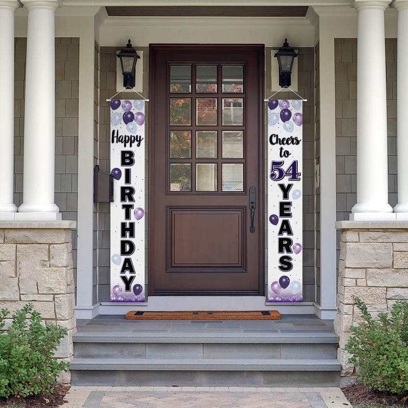 - [WAHT YOU GET]:💜 1pcs "Happy Birthday" and 1pcs "Cheers to 54 Years" purple door banner.Banner pre-strung so will not waste your time,Easy to use!