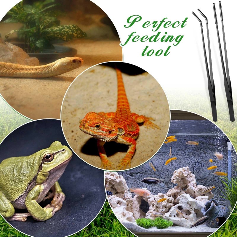 Quality and Material: aquarium tongs are crafted from stainless steel, ensuring robust and rust resistant usage, the rubber tip is black, reliable to use, will not hurt the mouth of the reptile while feeding, offering a long lasting use
