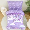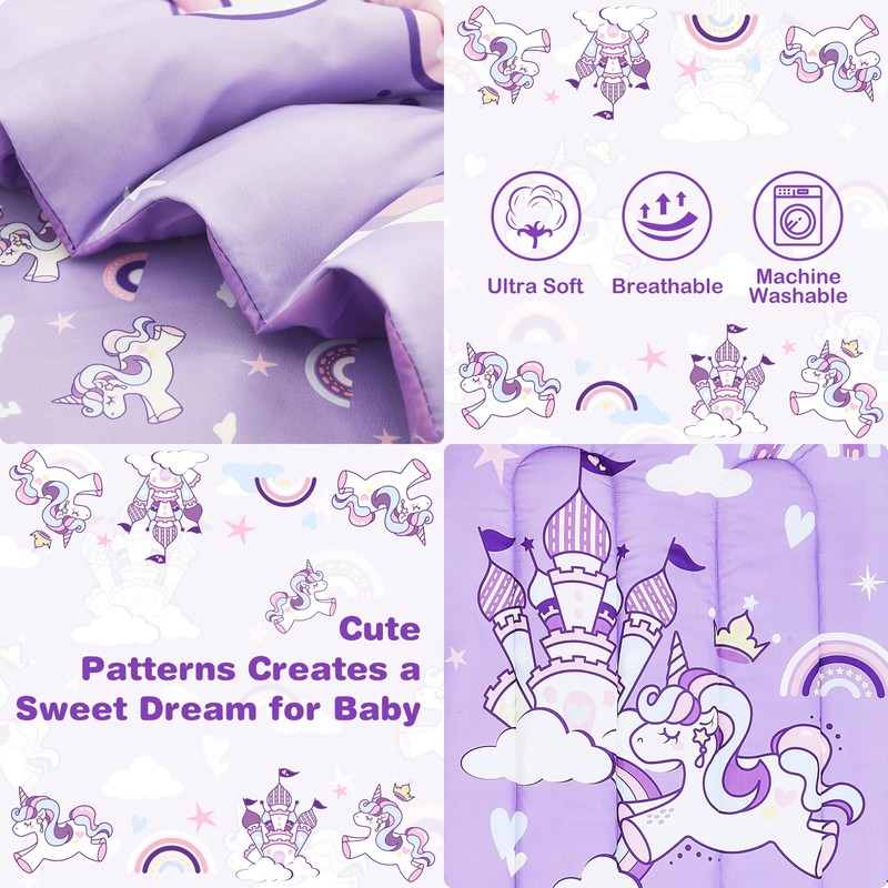 lasoftan Toddler Bedding Set, 4 Piece Bed-in-a-Bag Toddler Bed Comforter Sets for Girls, Toddler Bed Set, Purple Unicorn Printed, Toddler Comforter, Machine Washable