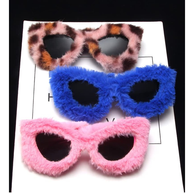 LASPOR Women Plush Fuzzy Cat Eye Sunglasses Punk Soft Velvet Shades Ladies UV400 Handmade Party Eyewear (Pink)