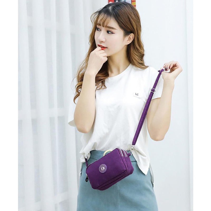 LassZone Women's Small Crossbody Bags Cell Phone Purse Nylon Shoulder Bag 3 Layer Wristlet Wallet Zipper Clutch Purse