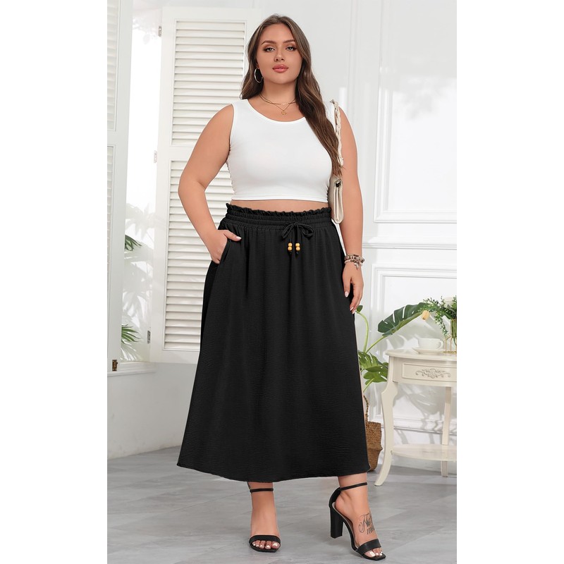 - 【Trendy Style】: Our PLUS SIZE Maxi skirt is a must-have wardrobe essential, blending chic aesthetics with unparalleled comfort. The A-line silhouette and Maxi length flatter every curve, offering a universally appealing look that enhances all body types. The high-rise design streamlines your silhouette, ensuring a sleek and polished appearance.
